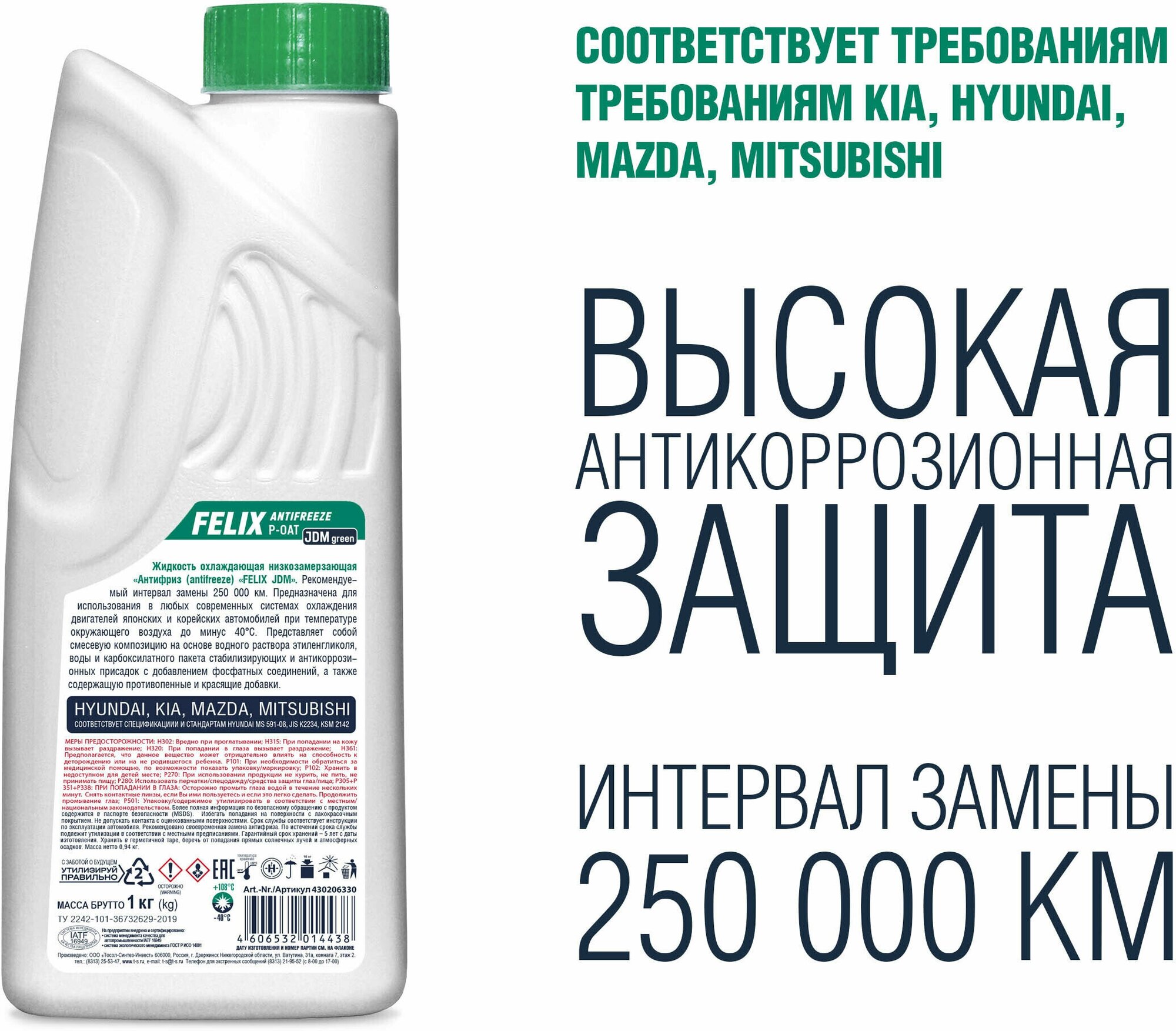 Антифриз Felix Jdm, (Hyundai,Kia,Mazda,Mitsubishi) (Зеленый) 1Кг Felix арт. 430206330