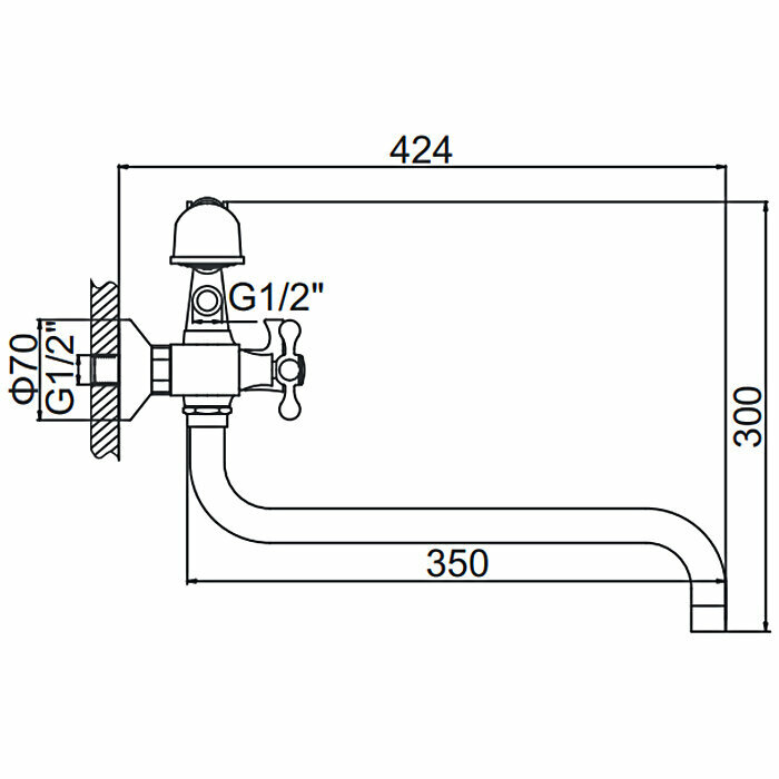 Смеситель на раковину настенный Эверест B46-350 с круглым поворотным изливом, кран-буксы 1/2", хром