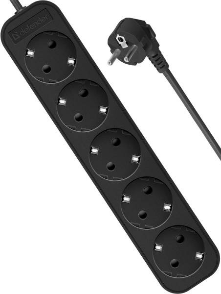 Удлинитель Defender M518 1.8 метра 5 розеток с заземлением, черный