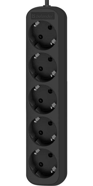 Удлинитель с заземлением Defender M518 1.8 м, 5 розеток, черный