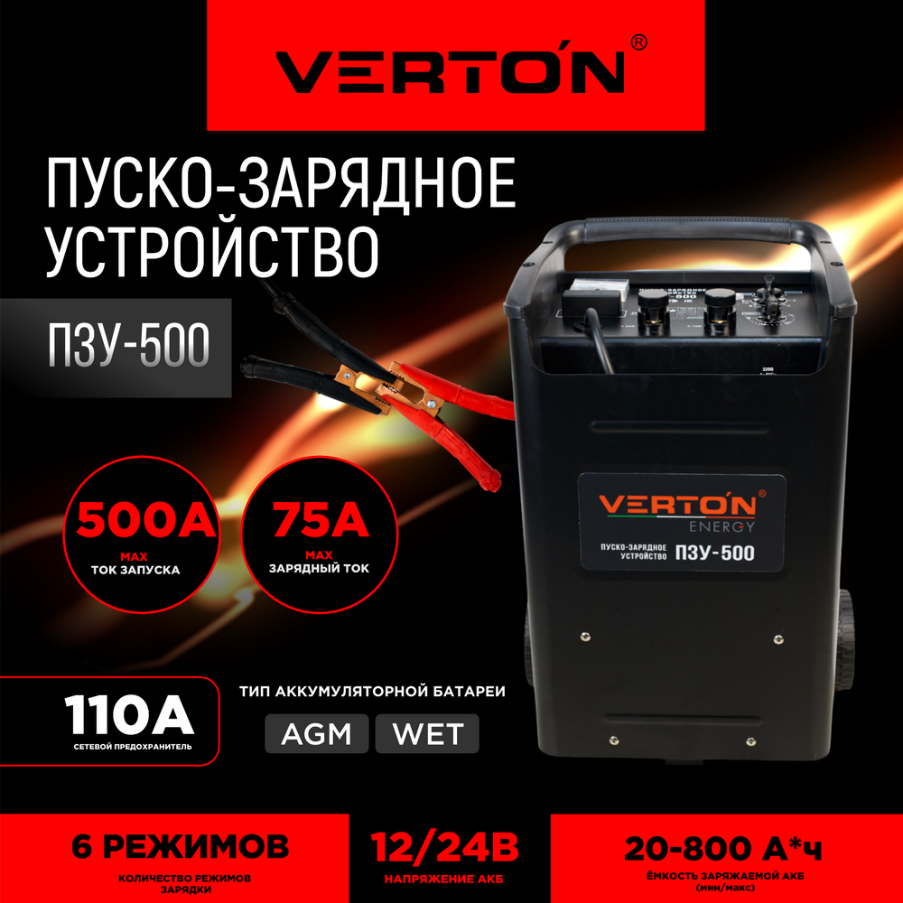 Пуско-зарядное устройство VERTON Energy ПЗУ- 500 информация: