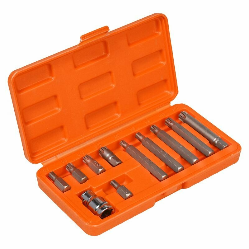Набор бит вставок SPLINE 3/8 30мм и 75мм с держателем бит 1/2 DR 11 предметов в кейсе (AT-B-50) AT-B-50
