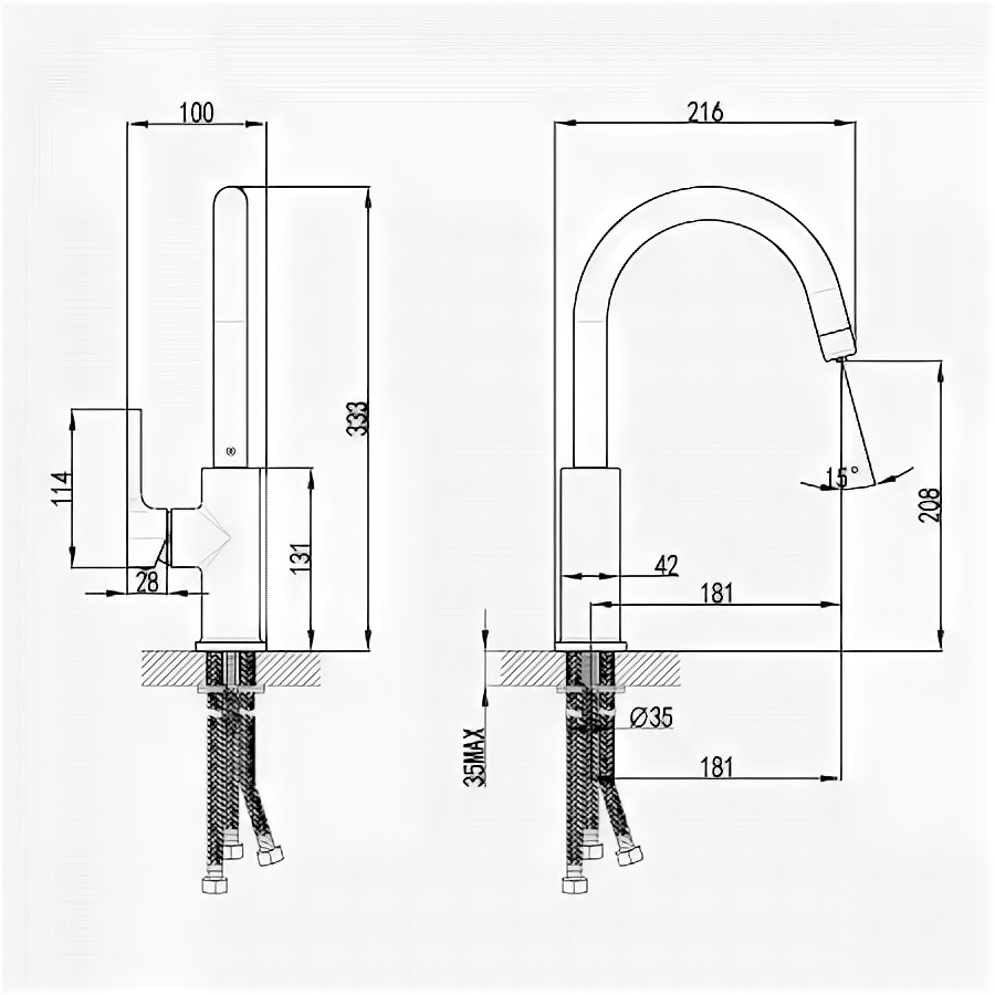 Смеситель для кухни с подключением к фильтру с питьевой водой из нержавеющей стали SUS304 Calorie CAL50116-3