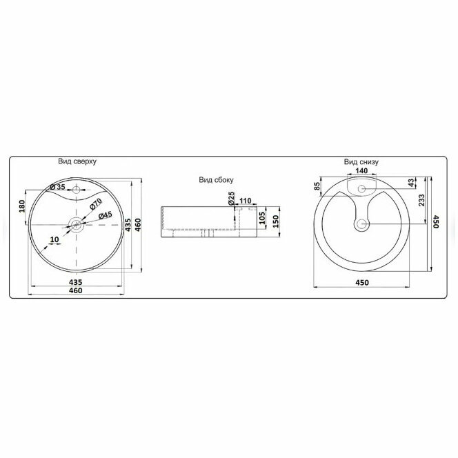 | Диаметр сливного отверстия | 45 мм |