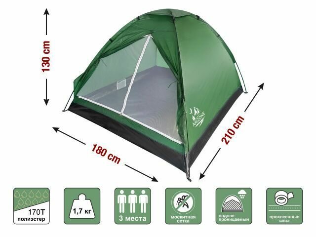 Палатка Coyote-3 (Койот-3), зеленая, ARIZONE (размер: 210х180х130 см) (28-274504) информация:
