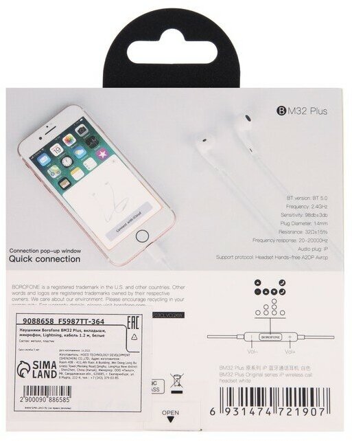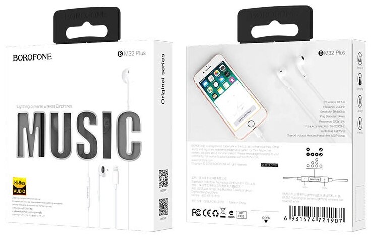 Отзывы на Borofone Наушники Borofone BM32 Plus, вкладыши, микрофон, Lightning, кабель 1.2 м, белые
