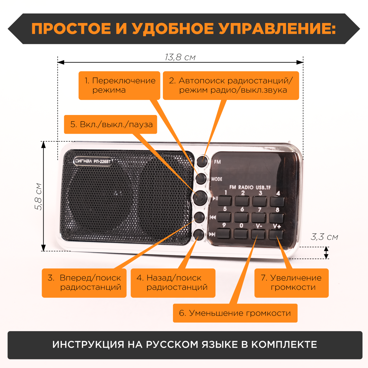 Радиоприемник портативный Сигнал РП-226BT, черный/серебристый, USB, microSD