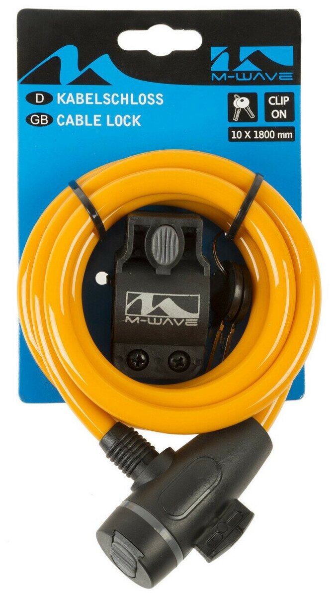 Замок велосипедный M-WAVE S 10.18 тросовый, 10х1800мм, оранжевый информация: