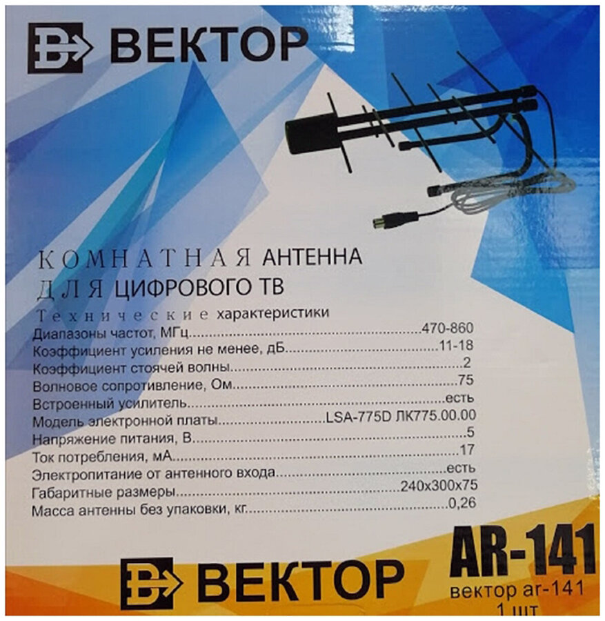 Комнатная активная антенна для цифрового телевидения "Вектор AR 141" информация: