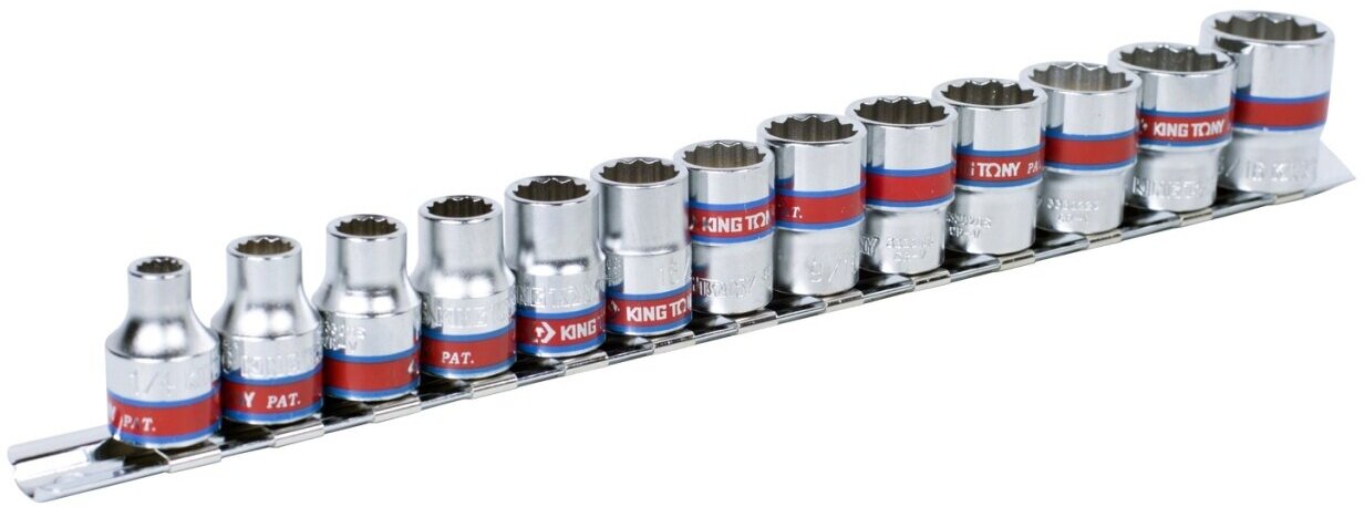 KING TONY Набор торцевых головок 3/8", двенадцатигранные, 1/4"-13/16", 13 предметов информация:
