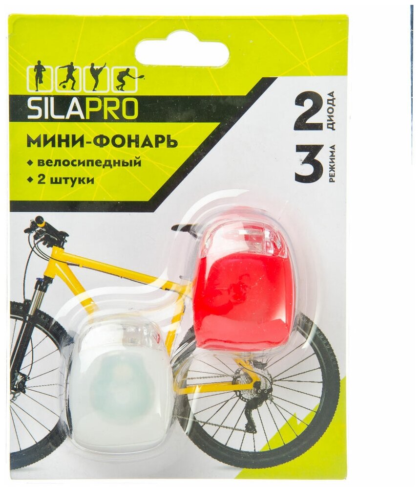 Мини-фонарь велосипедный SILAPRO, 3 режима, 2 диода, батарейное питание.в комплекте: 2xСR2035, 2 цвета