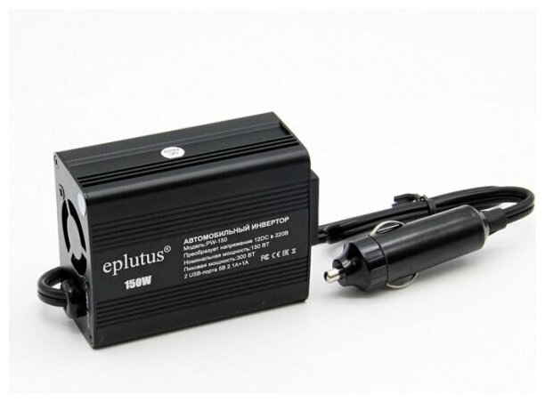 Автомобильный инвертор Eplutus PW150, 220V на 12V, черный информация: