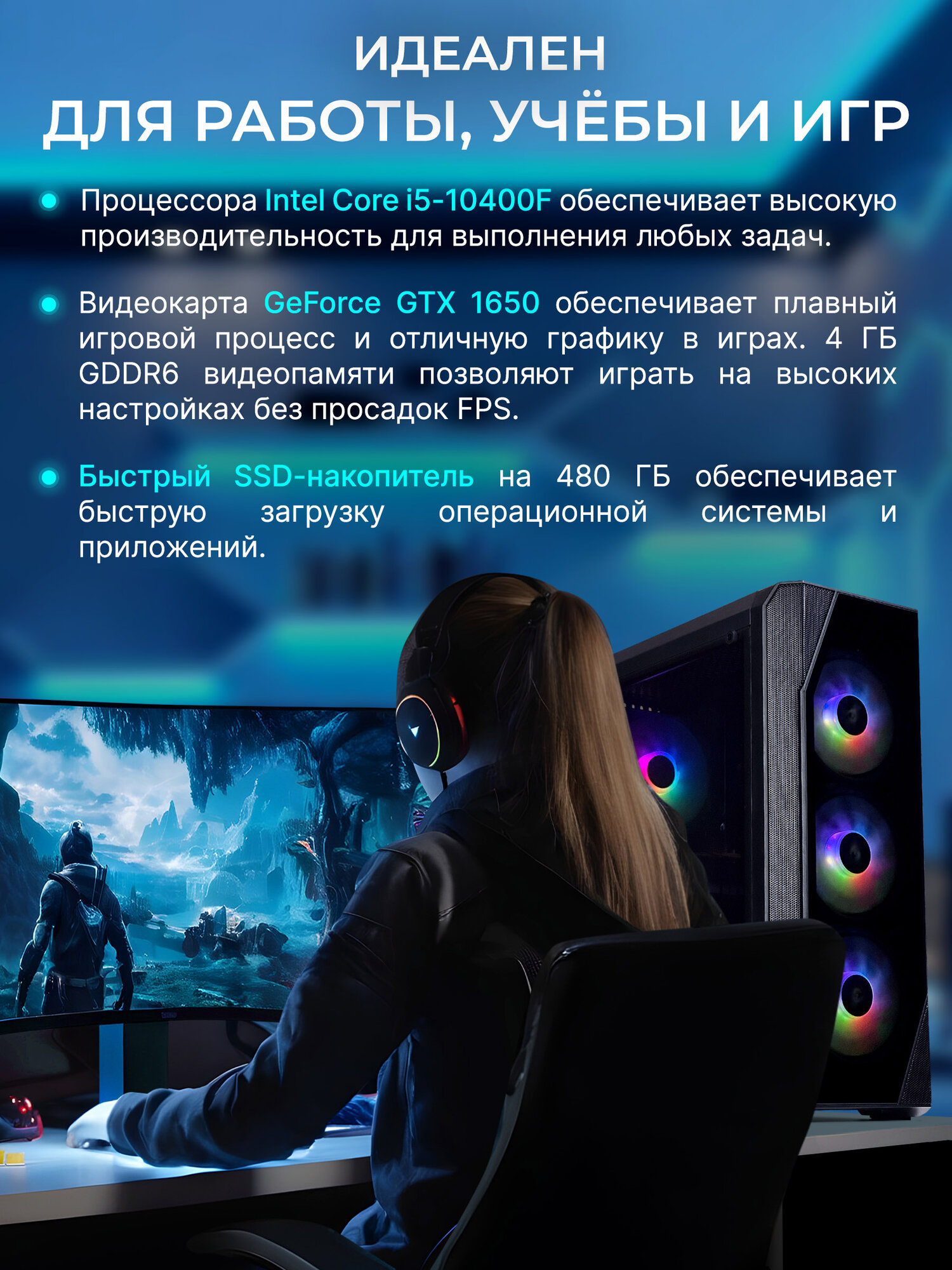 Игровой компьютер M16 Intel Core i5-10400F 2.9-4.3 GHz - 6 Core / 16Гб DDR4 / 480Гб SSD / GeForce GTX 1650 4Gb / H510M / 600W /
