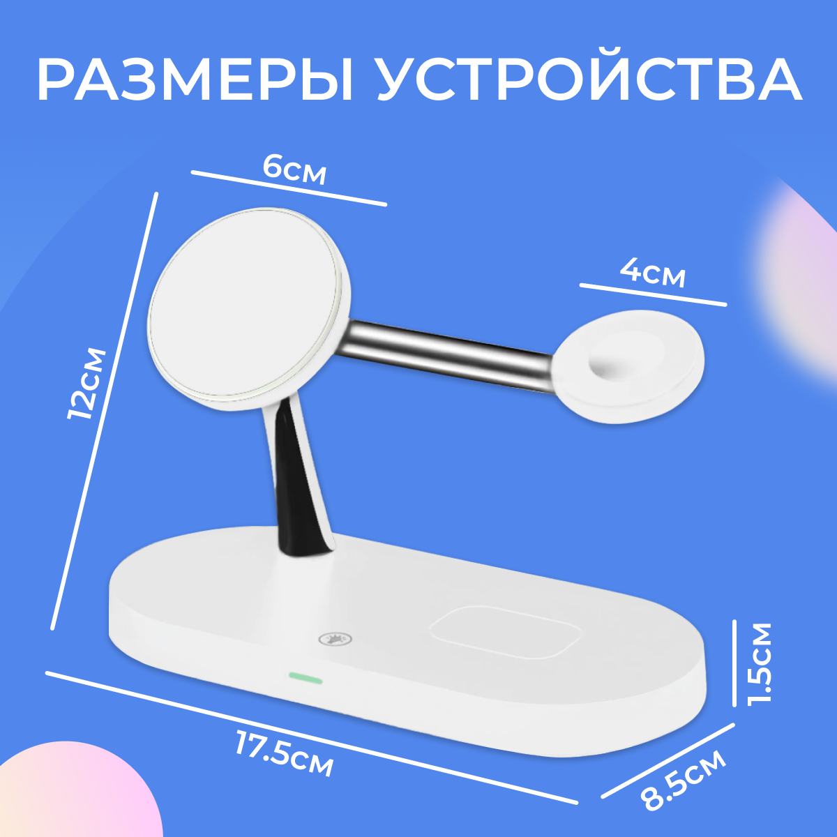 Отзывы на Беспроводная док станция 5 в 1 MagSafe 15W для Apple iPhone, Apple Watch и AirPods / Зарядка на Эпл Айфон, Эпл Вотч и Аирподс / Белая