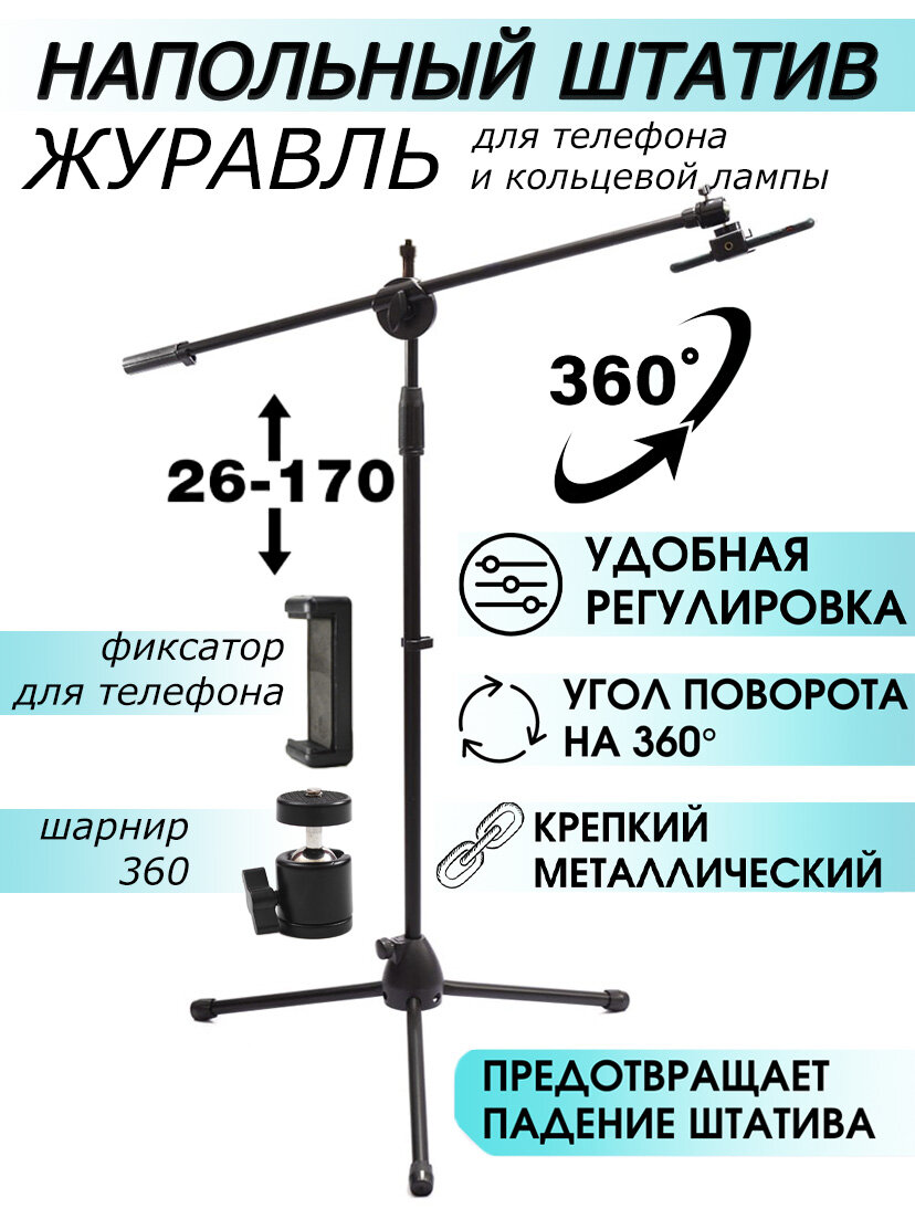 Штатив Журавль напольный для телефона для горизонтальной съемки информация: