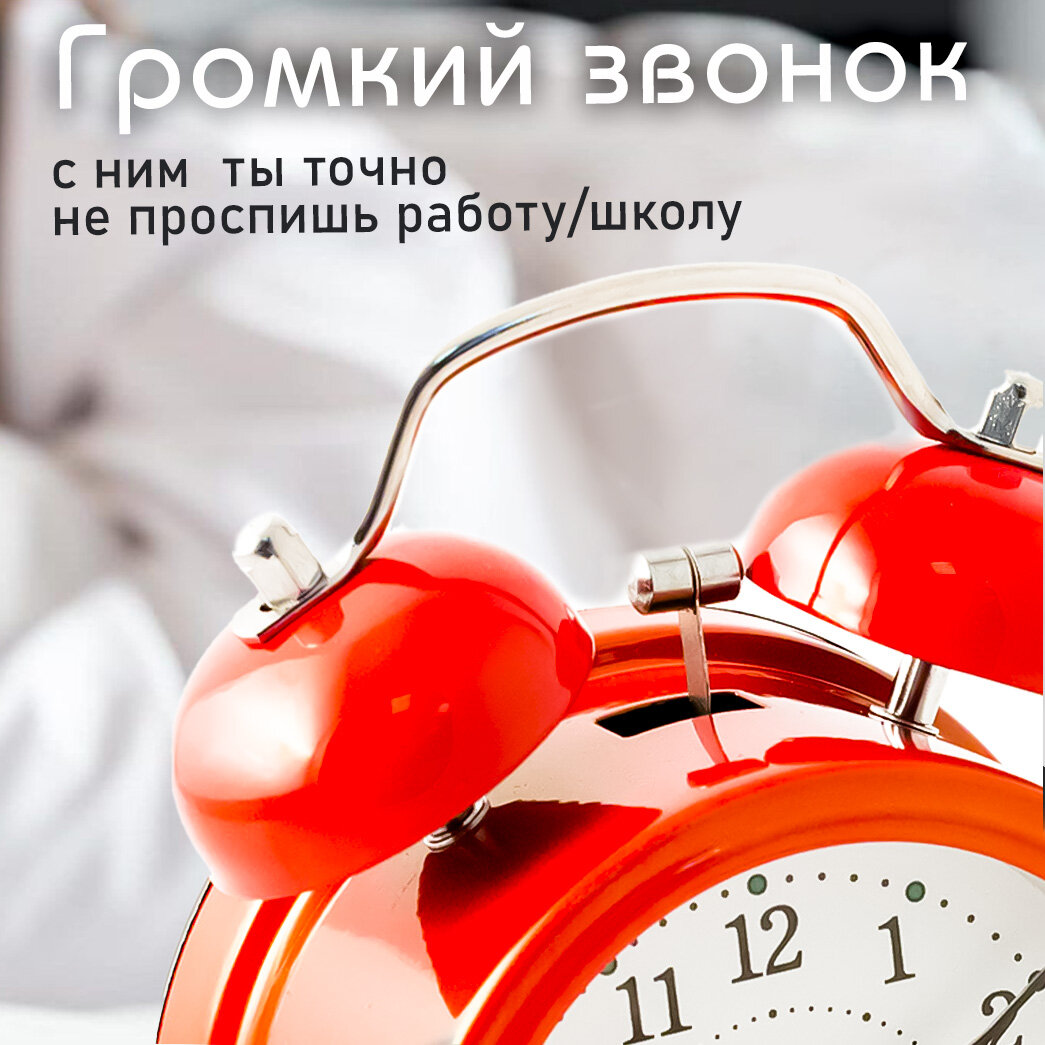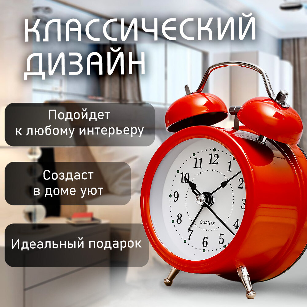 Часы будильник металл Кругляш красные классические настольные подарок женщине на 8 марта, мужчине на 23 февраля, ребенку 887 ₽