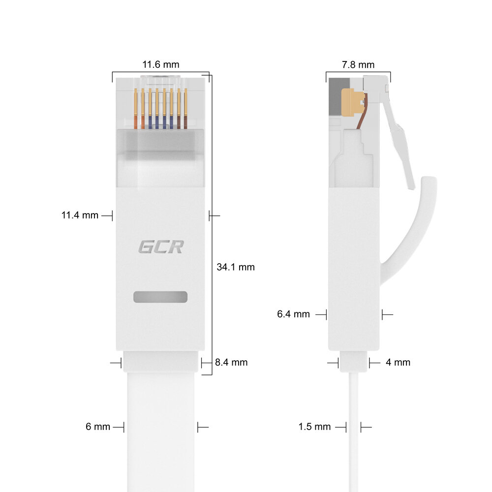 Патч-корд 20м GCR PROF плоский UTP cat.6 10 Гбит/с RJ45 LAN компьютерный кабель для интернета медный контакты 24K GOLD (GCR-LNC62) белый