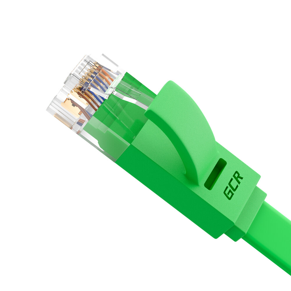LAN кабель 15м GCR PROF плоский UTP cat.6 10 Гбит/с RJ45 LAN кабель для интернета медный контакты 24K GOLD (GCR-LNC62) зеленый