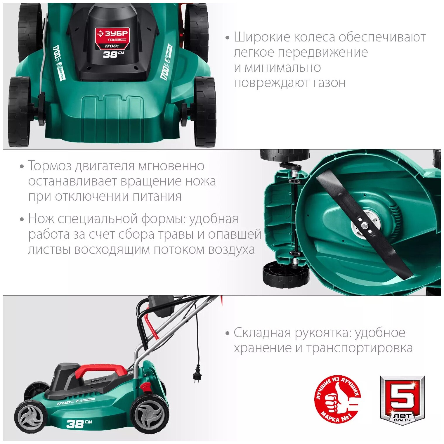 Газонокосилка электрическая Зубр ГСЦ-38-1700, 38см, несамоходная