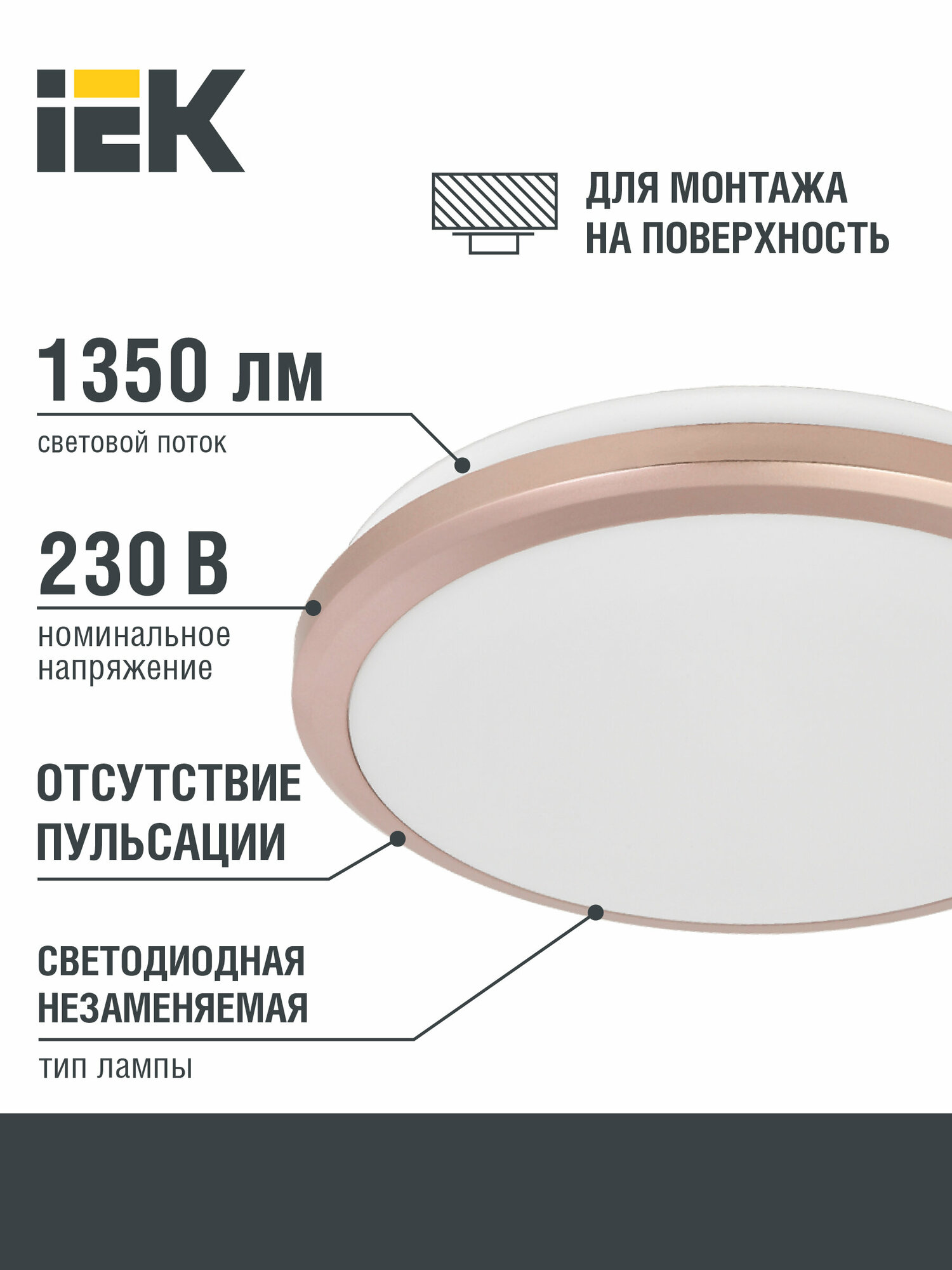 Светильник светодиод 18Вт круг 4000К 1350Лм розовое золото IP54 ДПБ 3203 IEK 350 ₽