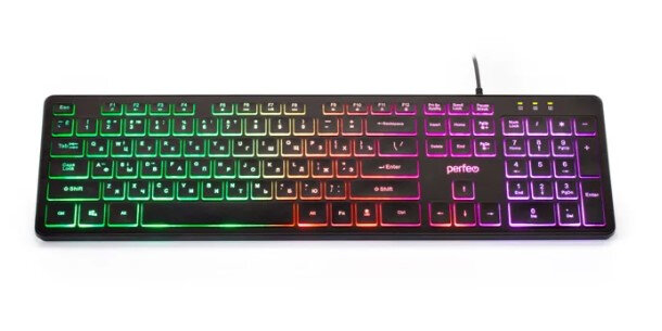 Клавиатура Perfeo "BRIGHT", GAME DESIGN, низкие кнподсветка, USB, чёрный