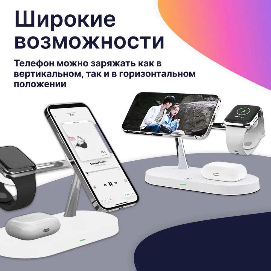 Отзывы на Беспроводная Док станция 5 в 1 MagSafe для iPhone, Apple Watch, AirPods / Магнитная зарядка 15W на телефон Айфон, Андроид, АирПодс, Эпл Вотч / Черная