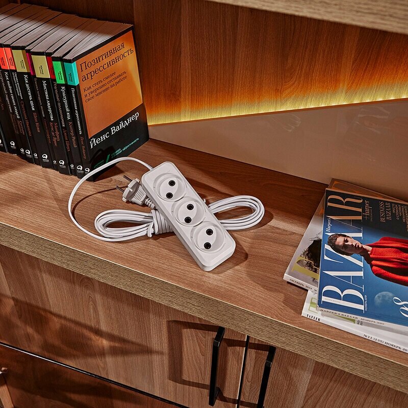 Удлинитель REXANT 3 гнезда, 3 м, 2х0.75 мм², б/з, белый (Сделано в России)