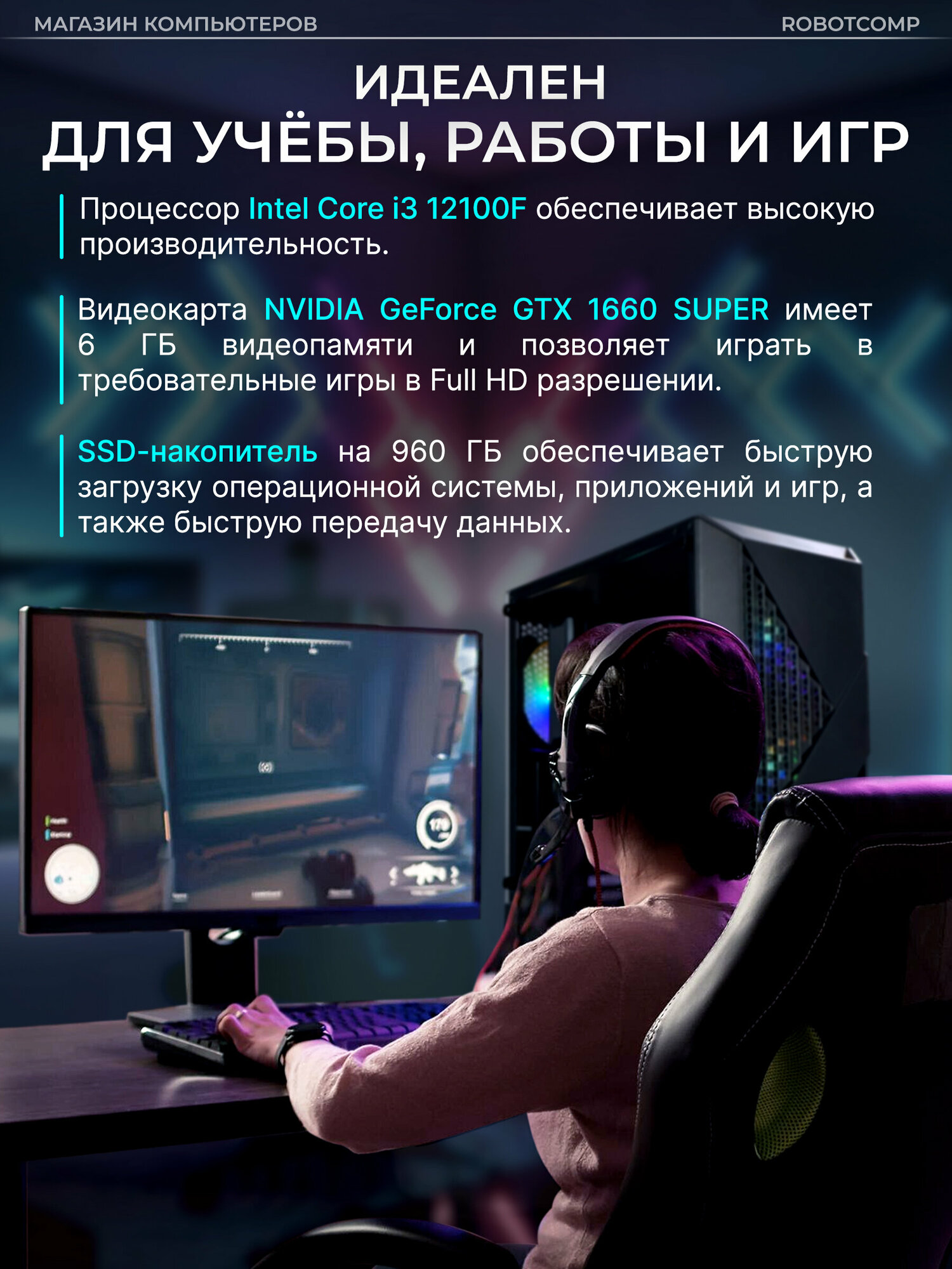 Системный блок мощный игровой i3 10100F / 16Gb / RTX 2060 SUPER 8GB / SSD 512Gb / Windows 11 Pro + WiFi