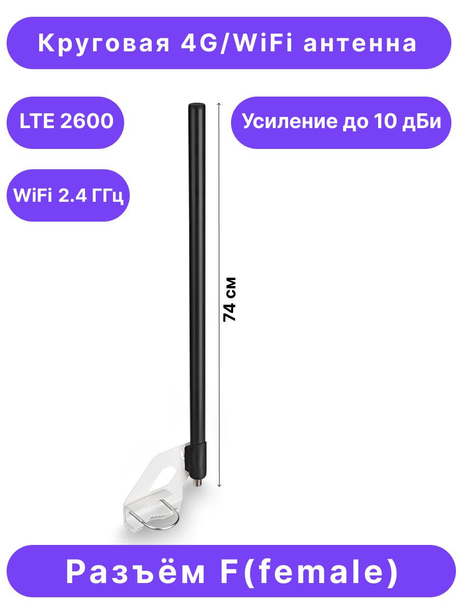 Антенна всенаправленная (круговая) 4G/Wi-Fi, 10 дБ KROKS KC10-2300/2700 (F-female) информация:
