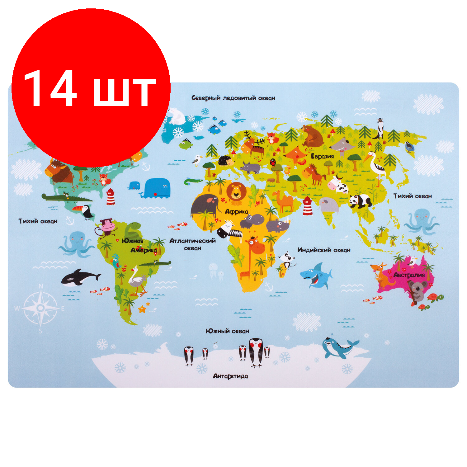 10 цен на Комплект 14 шт, Настольное покрытие пифагор, А3+, пластик, 46x33 см, "Map", 270403