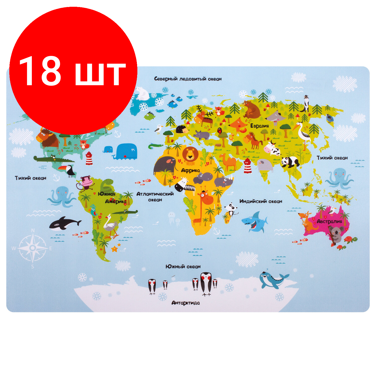 10 цен на Комплект 18 шт, Настольное покрытие пифагор, А3+, пластик, 46x33 см, "Map", 270403