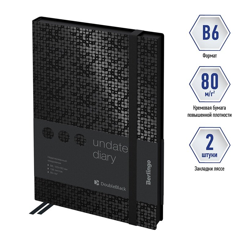 Отзывы на Ежедневник недатированный Berlingo В6, 136л., кожзам, "DoubleBlack", черный, с рисунком, черный срез