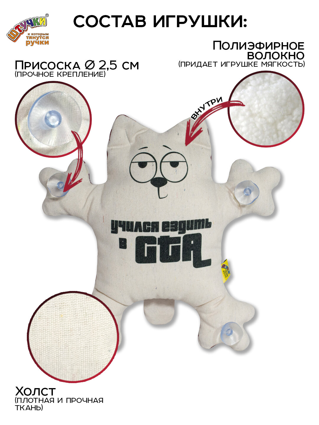 Штучки, к которым тянутся ручки/ Игрушка в машину Кот на присосках "Учился ездить в GTA" информация: