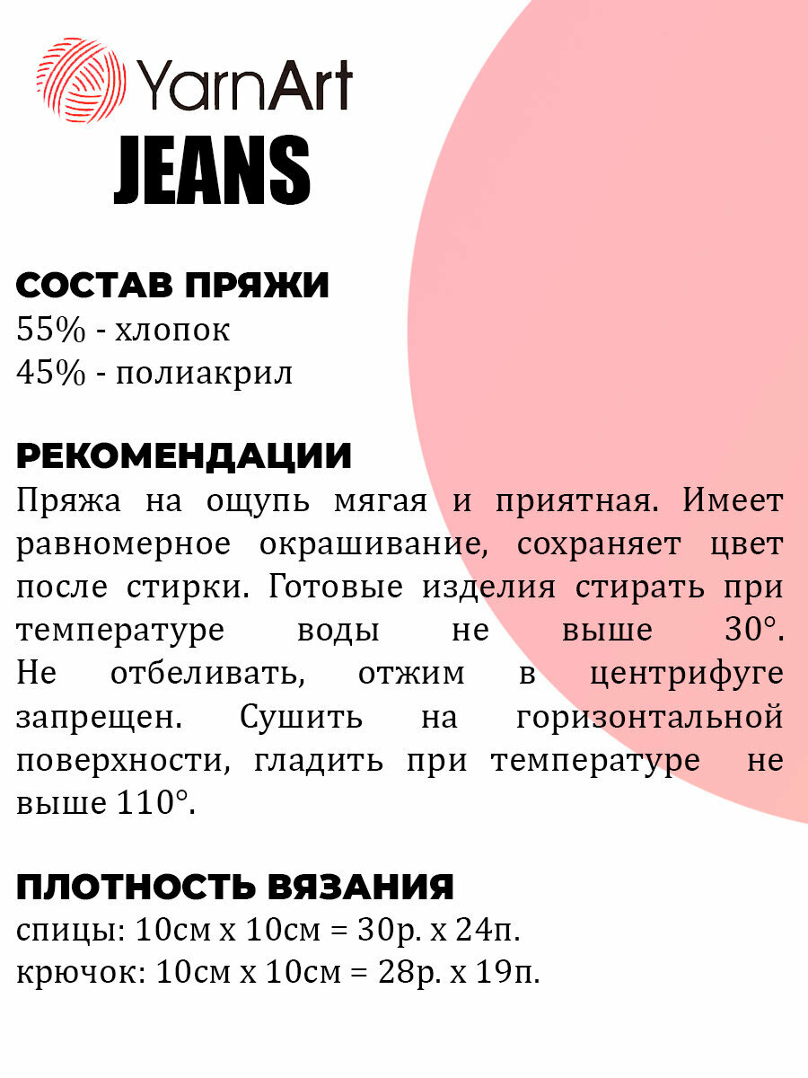 Пряжа YarnArt Jeans, 55 % хлопок, 45 % акрил, 50 г, 160 м, 5 шт