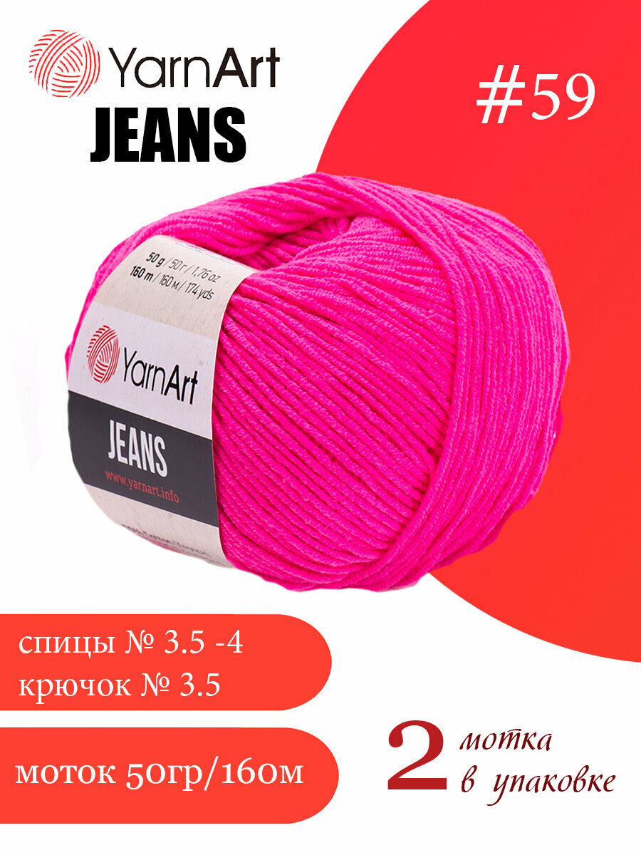 10 цен на Пряжа YarnArt Jeans Ярнарт джинс Фуксия (59) 2 мотка 50 г/160 м (45% акрил 55 хлопок)