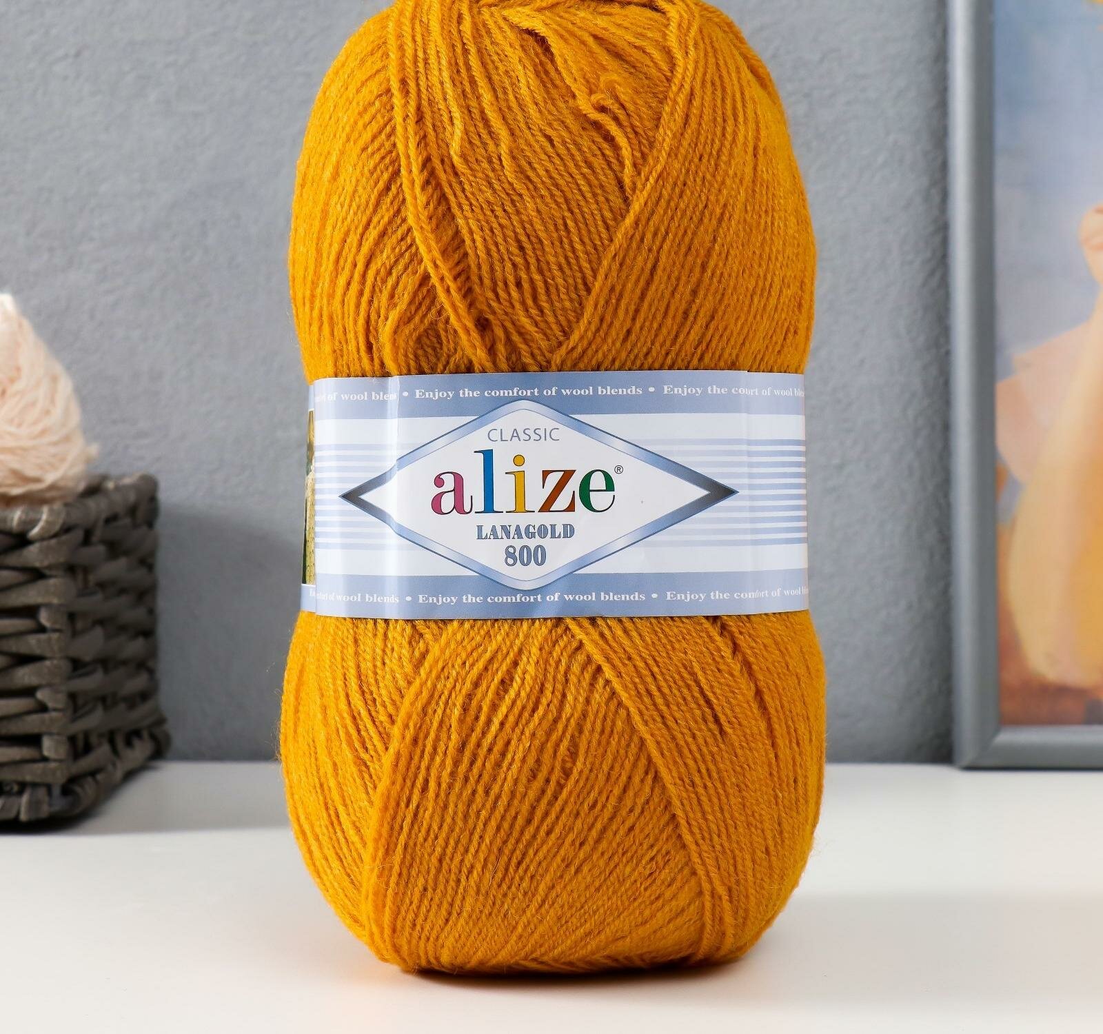 Отзывы на Пряжа Alize Lanagold 800 (Ланаголд 800) - 1 моток Цвет: 645 горчичный 49% шерсть, 51% акрил 100г 730м