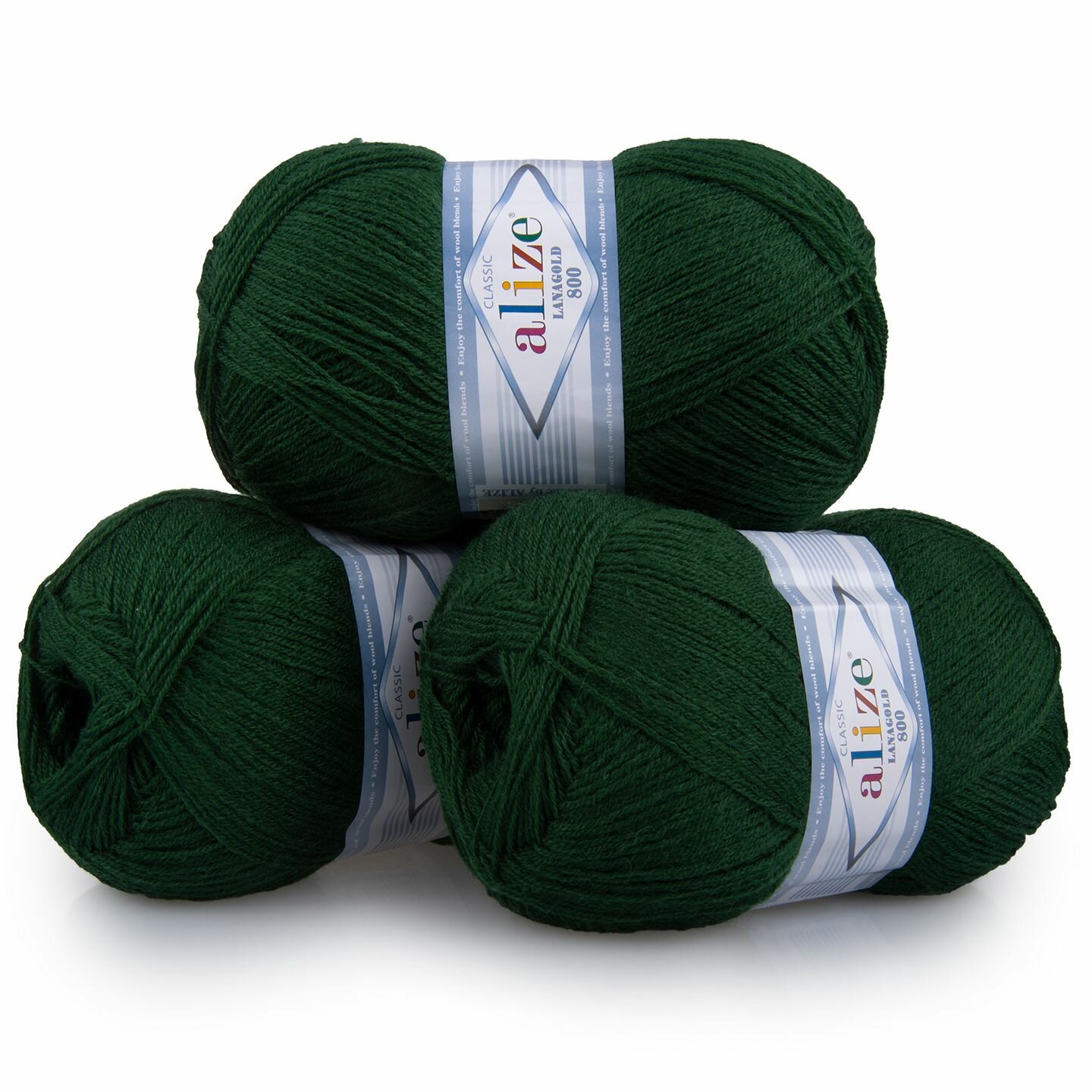 Пряжа Alize Lanagold 800 (Ланаголд 800) - 5 мотков Цвет: 426 темно-зеленый (Ланаголд 800) 49% шерсть, 51% акрил 100г 730м
