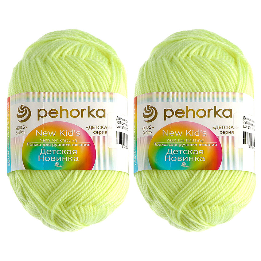 Пряжа Пехорка Детская новинка незрелый лимон (483), 100%высокообъемный акрил, 200м, 50г, 2шт