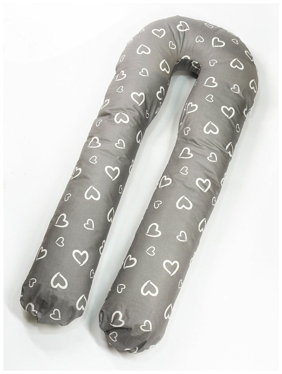 10 цен на Подушка для беременных для сна и кормления, Большая подкова форма U. Цвет-Сердечки на сером.Texxet. Подушка для кормления в подарок