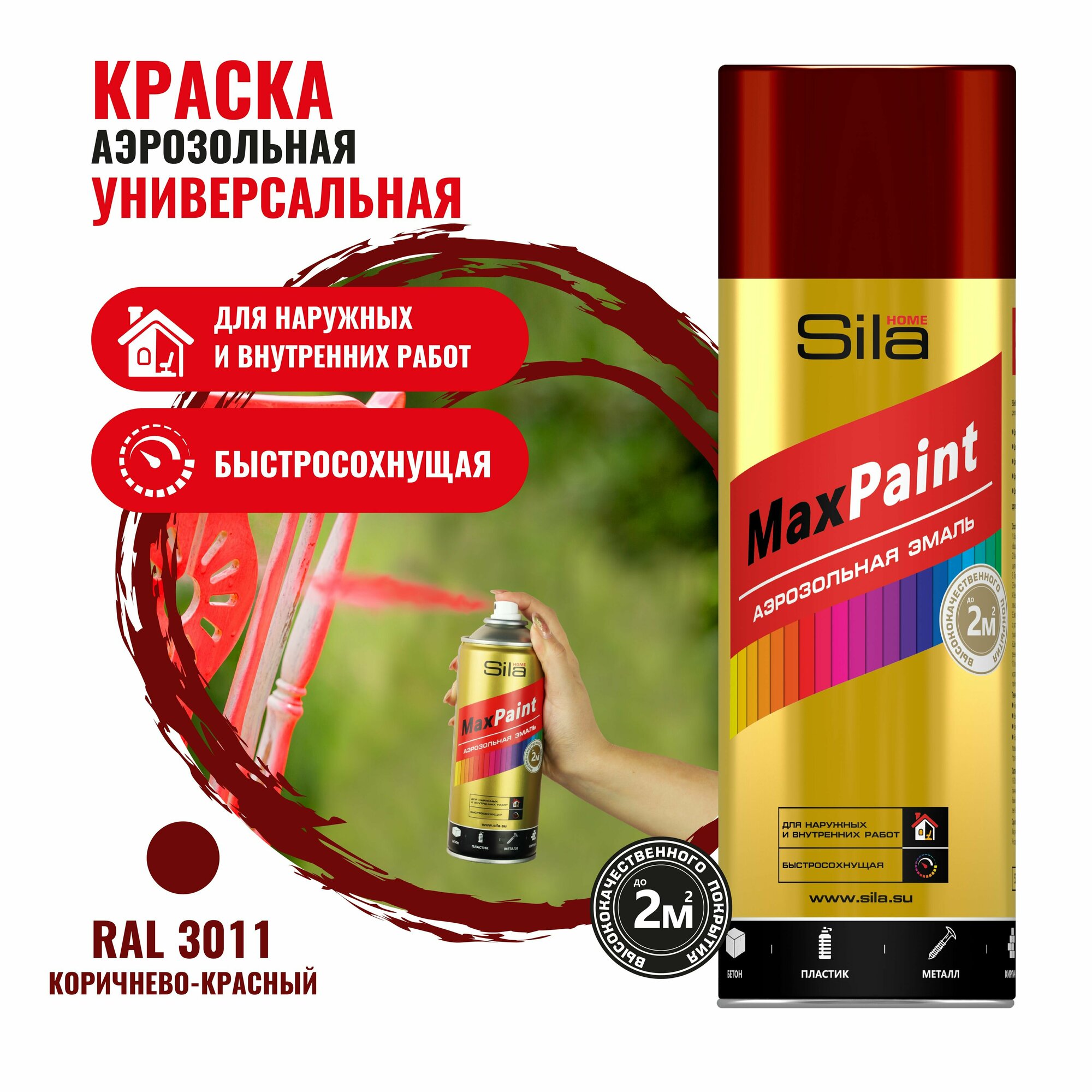 Sila HOME Max Paint, краска аэрозольная, универс., темно-красный RAL3011, 520мл SILP3011