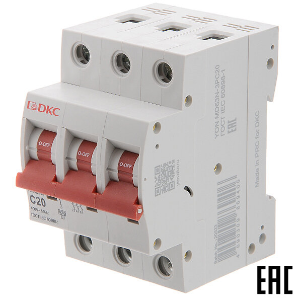3шт. - Выключатель автоматический модульный YON MD63 3P 20А C 6kA / DKC; арт. MD63-3C20-6; оригинал / - комплект 3шт 6 054 ₽