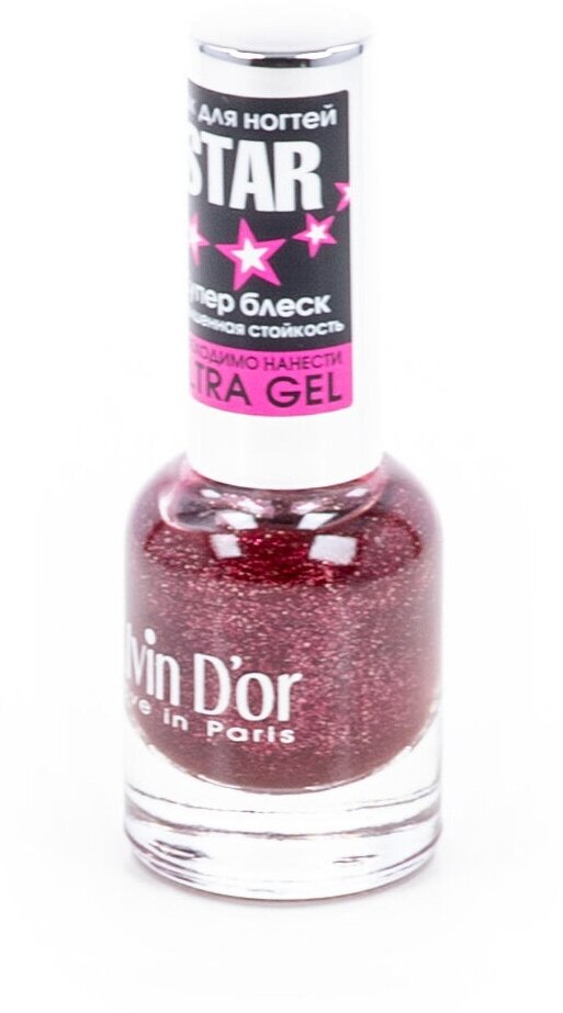 Alvin D'or, Лак д/ногтей STAR Супер блеск звёздный малиновый тон 6118
