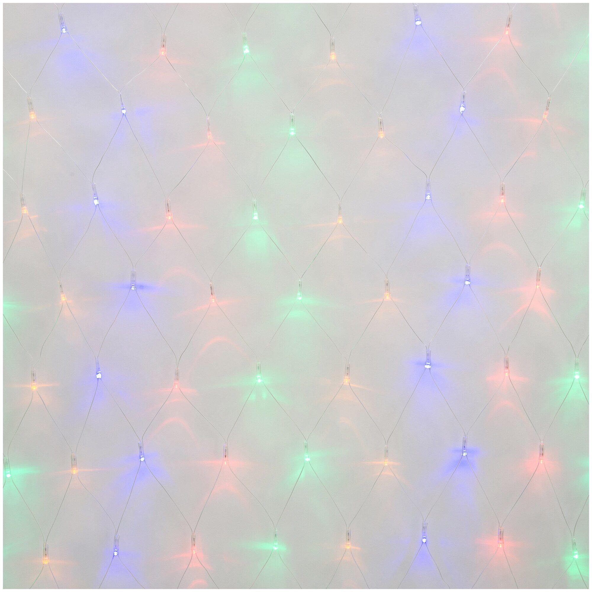 Сетка светодиодная с эффектом мерцания соединяемая Uniel 1,5х1,5м. 96 светодиодов. Разноцветный свет. Провод прозрачный (UL-00007218)