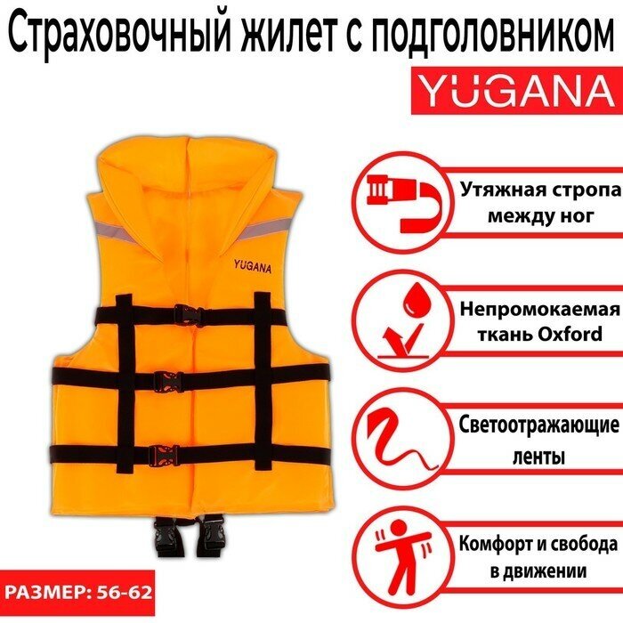 YUGANA Жилет страховочный с подголовником YUGANA, размер 56-62, оранжевый