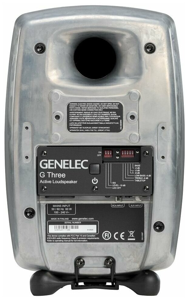 Отзывы на Genelec G Three BRw активная 2-полосная АС. НЧ 5" 50Вт, ВЧ 0.75" 50Вт. Подставки. Входы: аналог. RCA, XLR. Макс. SPL 104 дБ, 47Гц-25кГц (-6 дБ). Кроссовер 3000Гц. Габариты (ВхШхГ): 299х189х178мм (с подставками). Вес 5.0кг. Неокрашенный алюминий