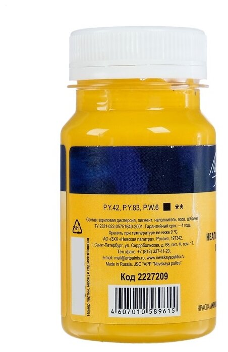 Завод художественных красок «Невская палитра» Краска акриловая художественная в банке 100 мл, ЗХК "Ладога", неаполитанская жёлтая, 2227209 информация: