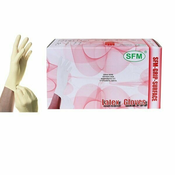 Перчатки латексные смотровые SFM Grip-Surface Германия 50 пар (100 штук) размер S (малый)