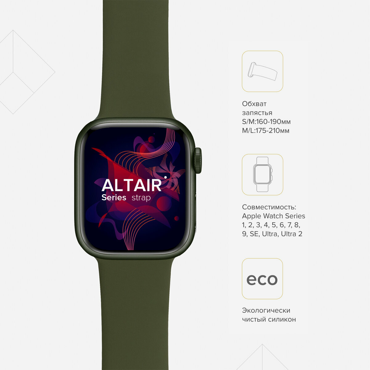 Lyambda Силиконовый ремешок Altair для Apple Watch 42/44/45 mm, olive