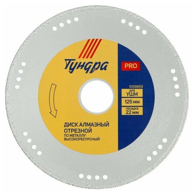 Диск алмазный отрезной тундра профи, по металлу, высокий ресурс, сухой/мокрый рез, 125х22 мм информация: