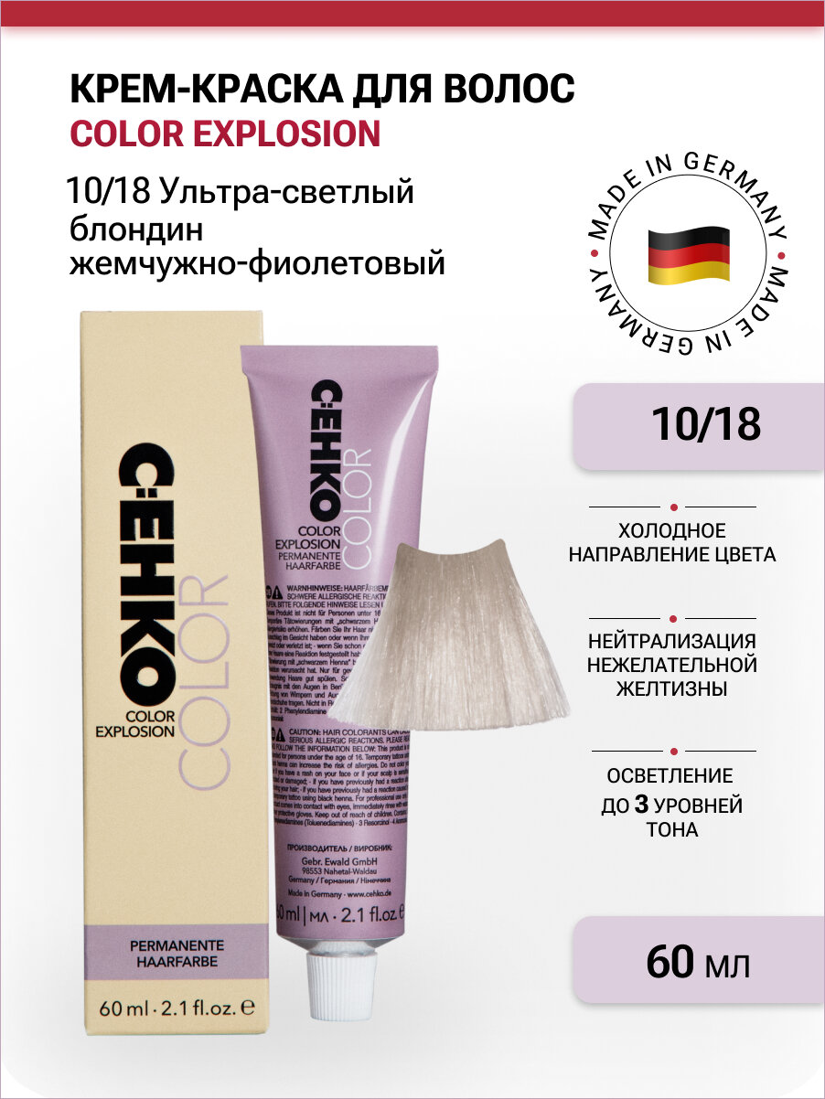 10 цен на C:EHKO Color Explosion Крем-краска для волос 10/18 Ультра светлый блондин жемчужно-фиолетовый, 60 мл